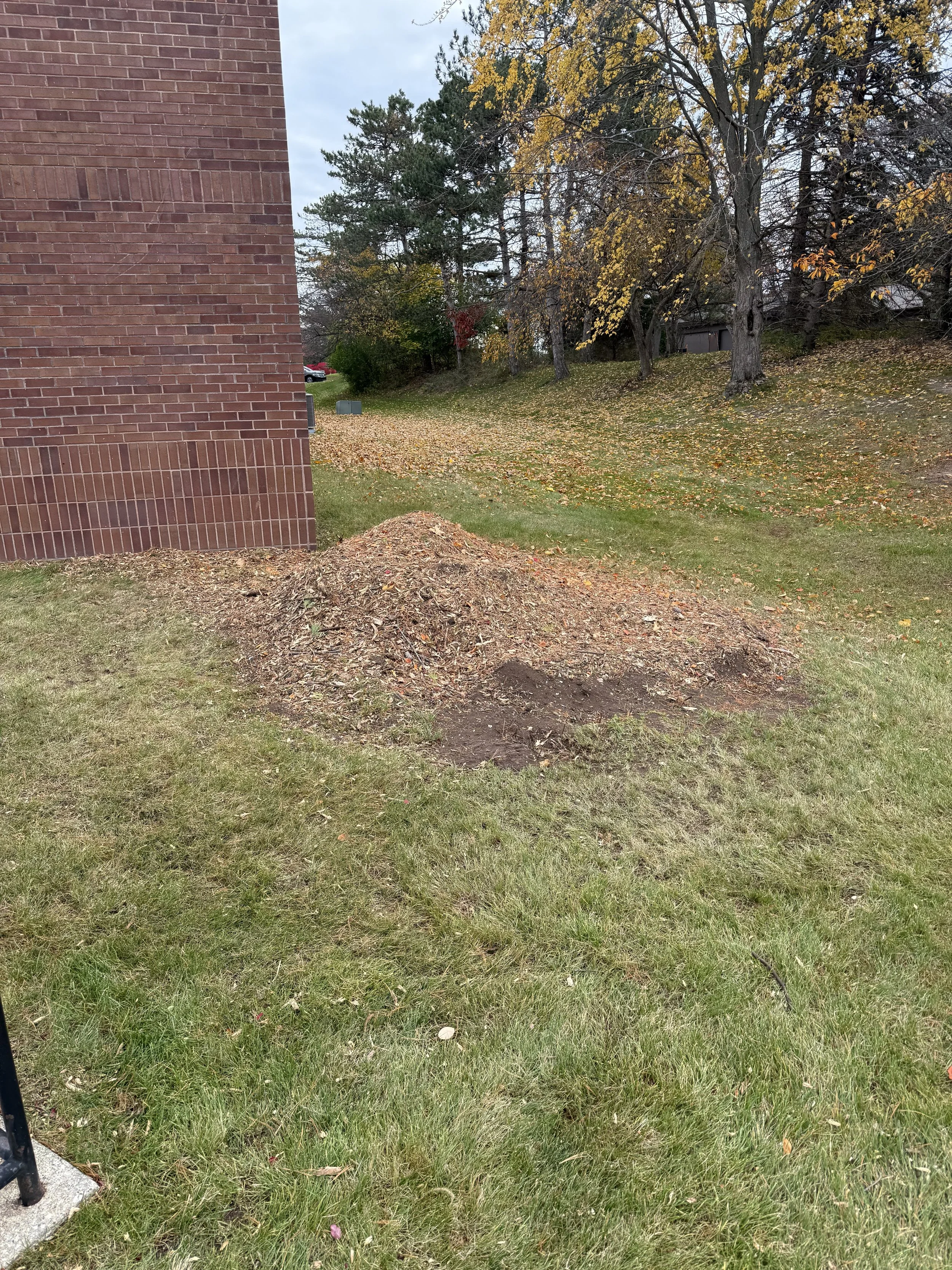 After we grind your stumps it results in a pile of mulch. When you get a stump grinding estimate you will receive 2 prices. One price will be for only stump grinding and we will leave the grindings in a pile for you (picture on the left). The other option will be to grind your stump, clean up and haul away all the grindings (picture on the right).